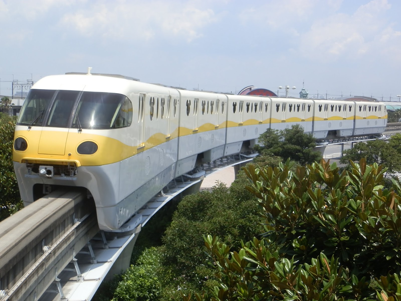21号編成(イエロー)。続いてはディズニーランド・ステーションにて。この時間帯は11号編成(ブルー)と21号編成(イエロー)のみの運用でした。